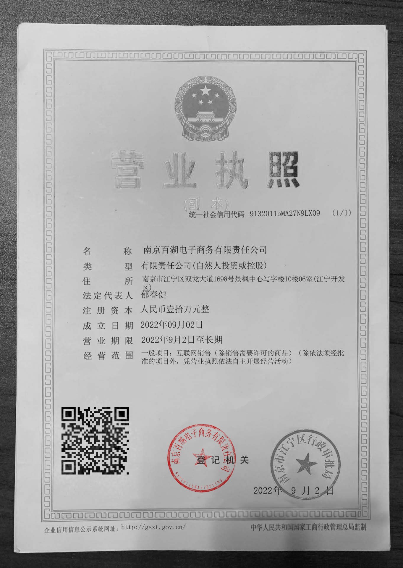 Corporate name:Nanjing Baihu E-commerce Co., Ltd
